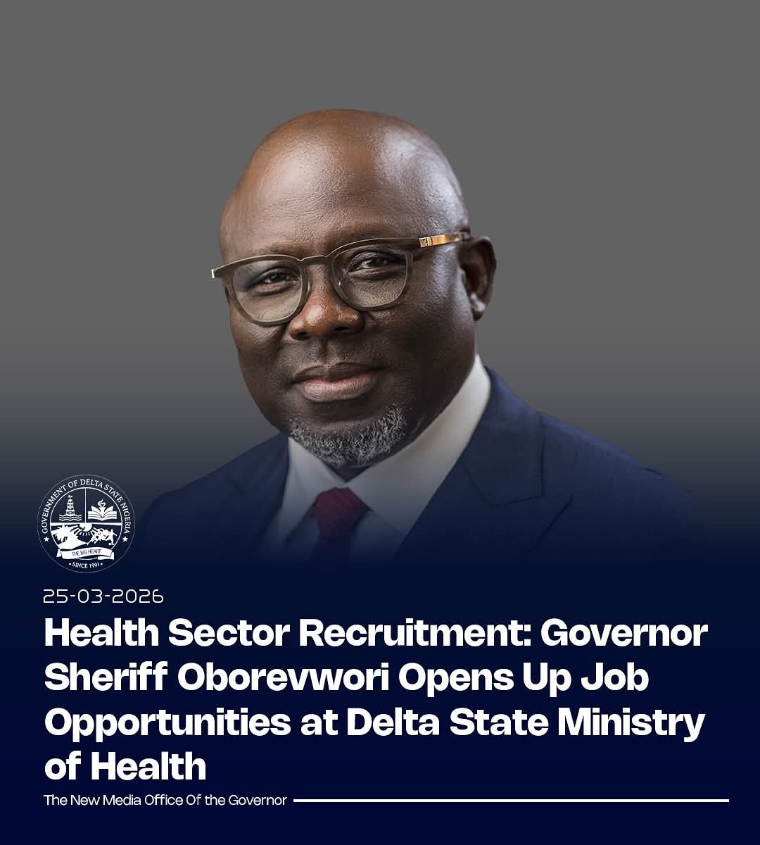 As part of the deliberate and sustained efforts of the Government to reposition the health sector for optimal performance, enhance quality service delivery, and ensure that all health institutions across Delta State are adequately manned by competent, skilled, and dedicated personnel, the Delta State Ministry of Health is pleased to announce the commencement of a recruitment exercise.
